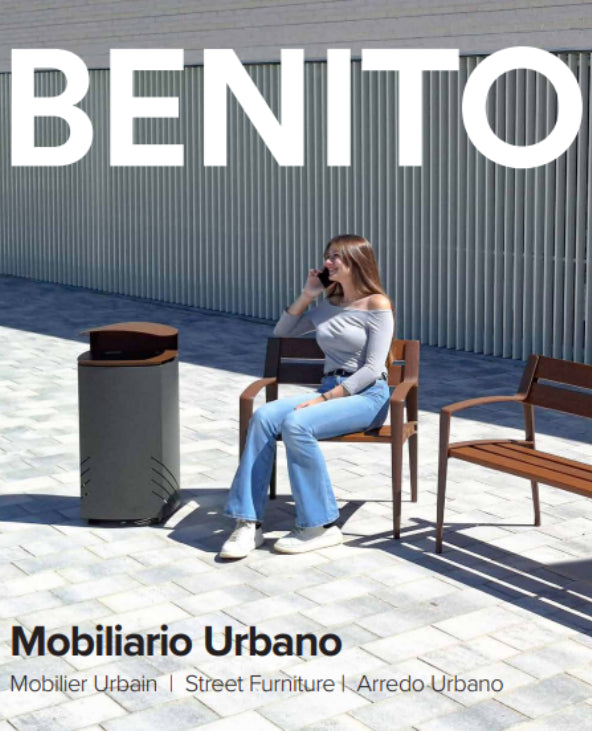 Benito je globalno prepoznatljiv brend specijaliziran za visokokvalitetni urbani namještaj, uličnu rasvjetu i rješenja za mobilnost dizajnirana do poboljšanje javnih prostora. S jakim naglaskom na inovacije, izdržljivost i održivost, Benitoova paleta proizvoda uključuje vanjske klupe, ležaljke, fotelje, kaveze za kavu, saksije i kante za smeće, čineći ga omiljenim brendom za parkove, ulice, komercijalne prostore i javna područja. Posvećen do zanatstvu i ekološkoj odgovornosti, Benito integrira najmodernije materijale i moderne dizajnerske estetske u svoje kolekcije, osiguravajući dugotrajne performanse i estetsku privlačnost.