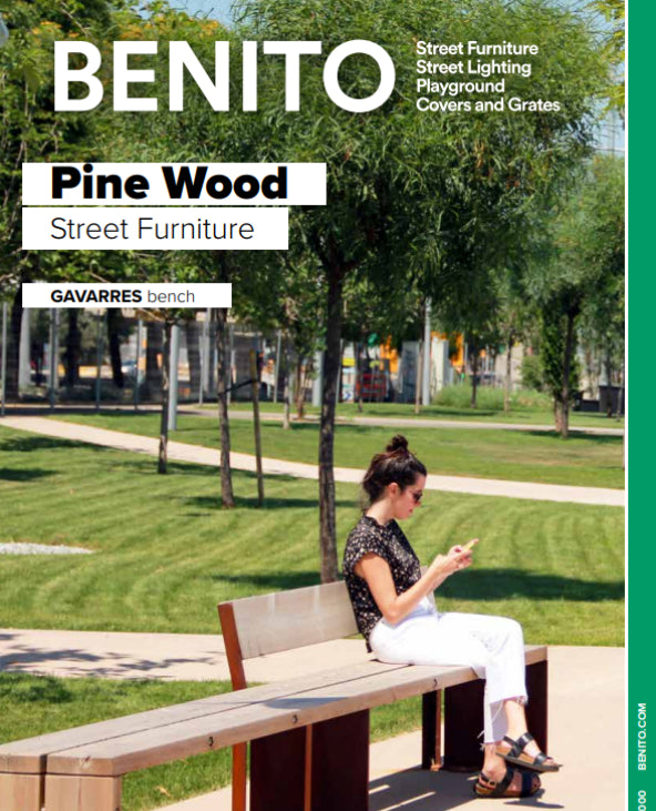 Brošura uličnog namještaja Benito od drva, bora i Corten čelika