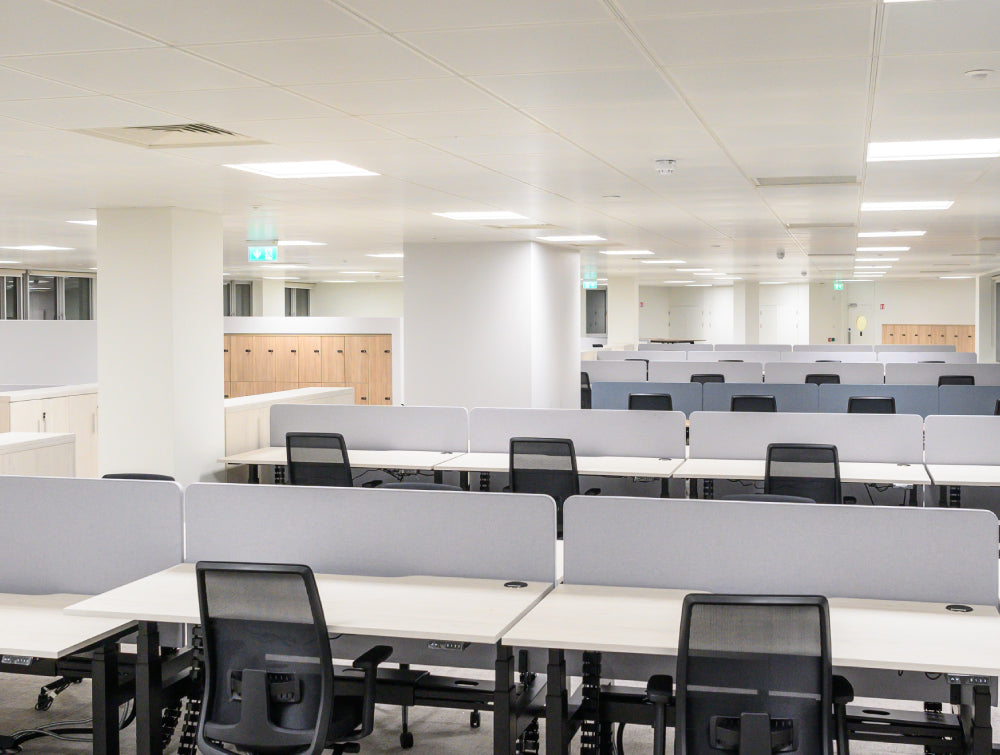 Spanning 1,300 sq. metres over two floors, this bespoke office fit-out for Ardmac exudes a contemporary design ethos. The space is thoughtfully crafted to include open-plan work areas, executive offices, meeting rooms, canteens, and breakout spaces, with a welcoming reception area on each floor. High-row lockers not only provide ample personal storage but also serve to delineate distinct zones within the workspace.