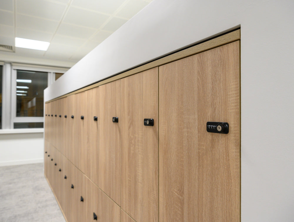 Ugradnjom ormarića u ured, timovi mogu sigurno pohraniti svoje personalizirane predmete, poput slika, bilježnica ili omiljenih šalica.