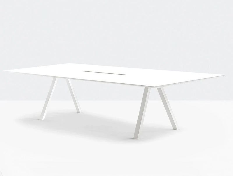 Arki-Table je linearan i strog sa strukturalnog gledišta, ali u isto vrijeme svestran i dizajniran za različite namjene. Stol s čeličnim potpornim nogama, ultratankom pločom od punog laminata s kabelskim upravljanjem poduprtim okvirom od ekstrudiranog aluminija. Arki-Stol, ploča od punog laminata debljine 6 mm, okvir od ekstrudiranog aluminija, čelične noge. Arki-Table je pogodan ili za prostore za sastanke ili za dvorane restorana. Širina dostupna u varijantama od 2400, 3000 i 3600 mm.