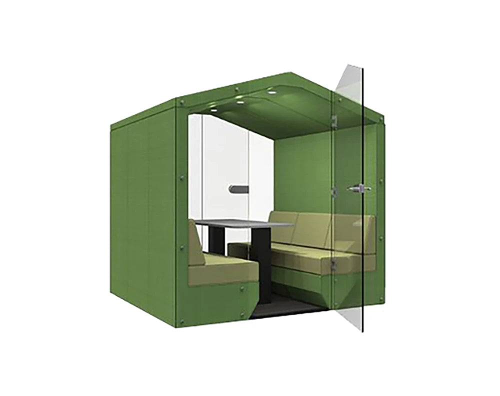 Upoznajte Bea prostor za sastanke za 4 osobe sa staklenom prednjom stranom. Naša kolekcija Bea sa staklenim vratima ili staklenim završnim stijenkama dodaje privatnost i tišinu radnoj sobi. Mogućnosti kosog krova s našom kolekcijom Bea den dodaju visinu uredskom krajoliku.