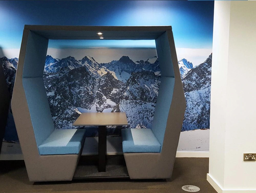 Ova natkrivena komora za sastanke može se konfigurirati za 2, 4 ili 6 sjedala s dodatnim zidom, rasvjetom i napajanjem. Ima akustični dizajn za smanjenje buke. Idealno za neformalne sastanke radne grupe.