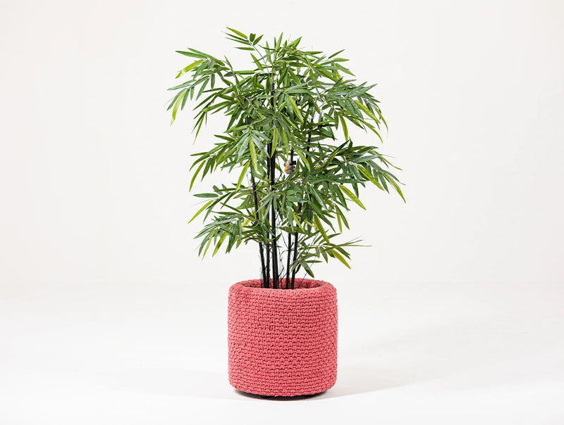 BuzziKnit saksija spaja akustičke performanse s modernim zelenilom. Izrađena od pjene visoke gustoće, apsorbira buku, poboljšavajući otvorene prostore poput ureda i domova. Ručno pleteni pokrivač od strane Maison Tricot, izrađen od 100% recikliranog PET-a, dodaje održivi dodir. Dizajnirana kao funkcionalni pregradni zid, potiče dobrobit dok upotpunjuje moderne interijere živopisnim bojama i ekološki svjesnim materijalima.