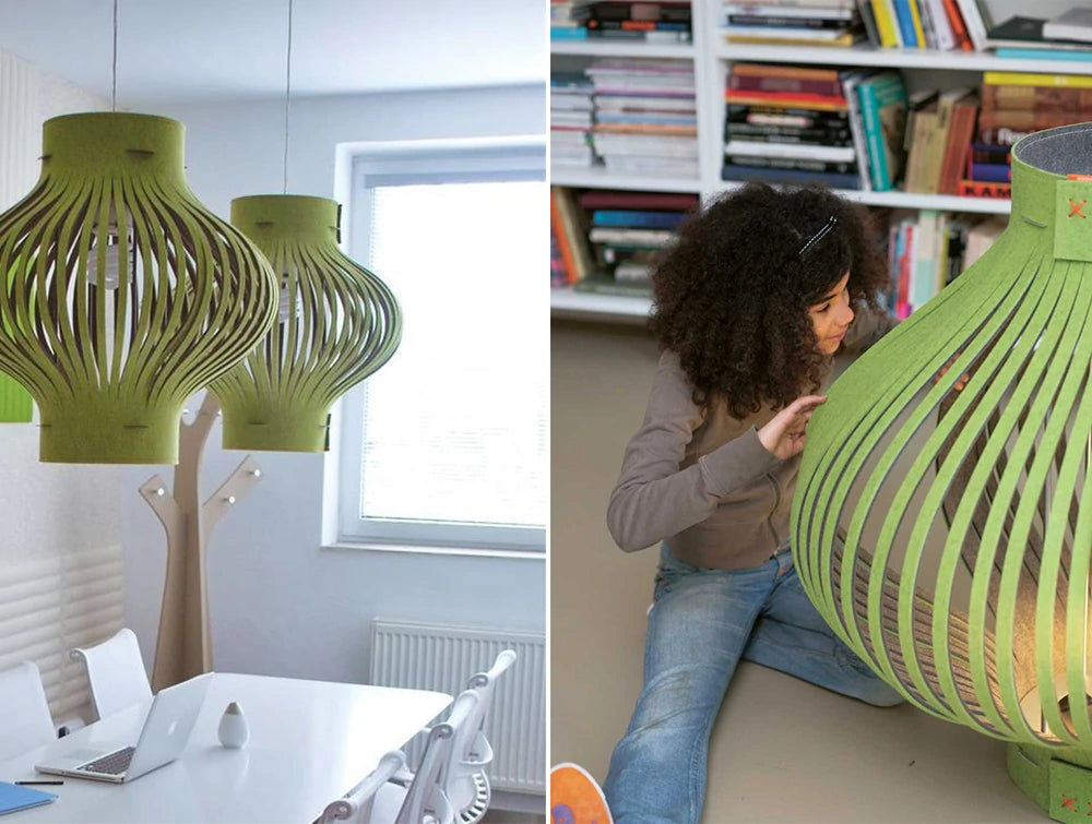 BuzziLight Mono je moderna dekorativna visilica izrađena od jednog sloja BuzziFelt tkanine. To je idealno rješenje akustične rasvjete za ured ili restoran.