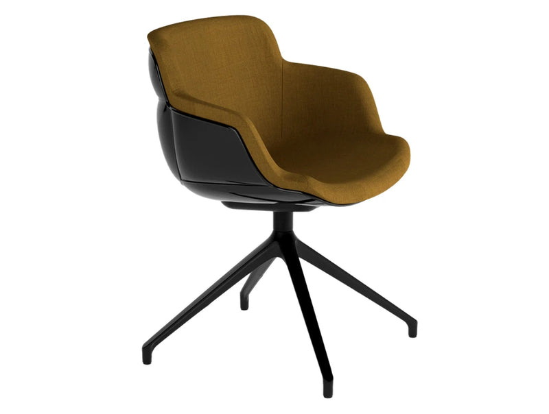 Stolica Choppy Sleek s postoljem ima sjajni čvrsti okvir, ljusku od tvrdog tehno polimera s udobnim tapeciranim jastucima. Završna obrada se može odabrati između raznih tkanina i kože dostupnih u nekoliko boja.
