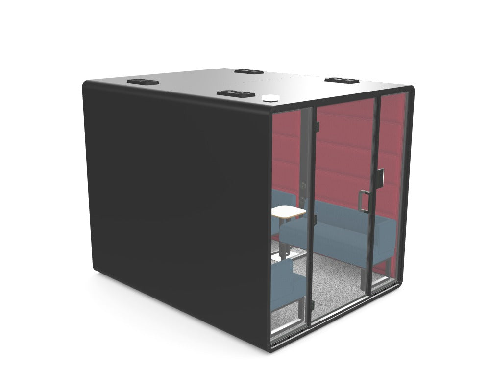 Specification: Upholstery - Red, Seats - Two Sides, Seat Upholstery - Blue, Body Finish - Cosmos Grey, Tables - Coffee Tables (2), Table Top Finish - White, Glass Finish - Clear PRZ, Hush Assistance - Not Required, Occupancy Signal - Required, Booking Screen - Required, TV Mounting - Required, Access Point 1 - Power Socket, Access Point 2 - Power Socket, Access Point 3 - USB A+C 25W, Access Point 4 - USB A+C 25W, Access Point 5 - USB A+C 25W, Access Point 6 - Power Socket, Access Point 7 - LAN, Access Point 8 - LAN, Door Position - Closed