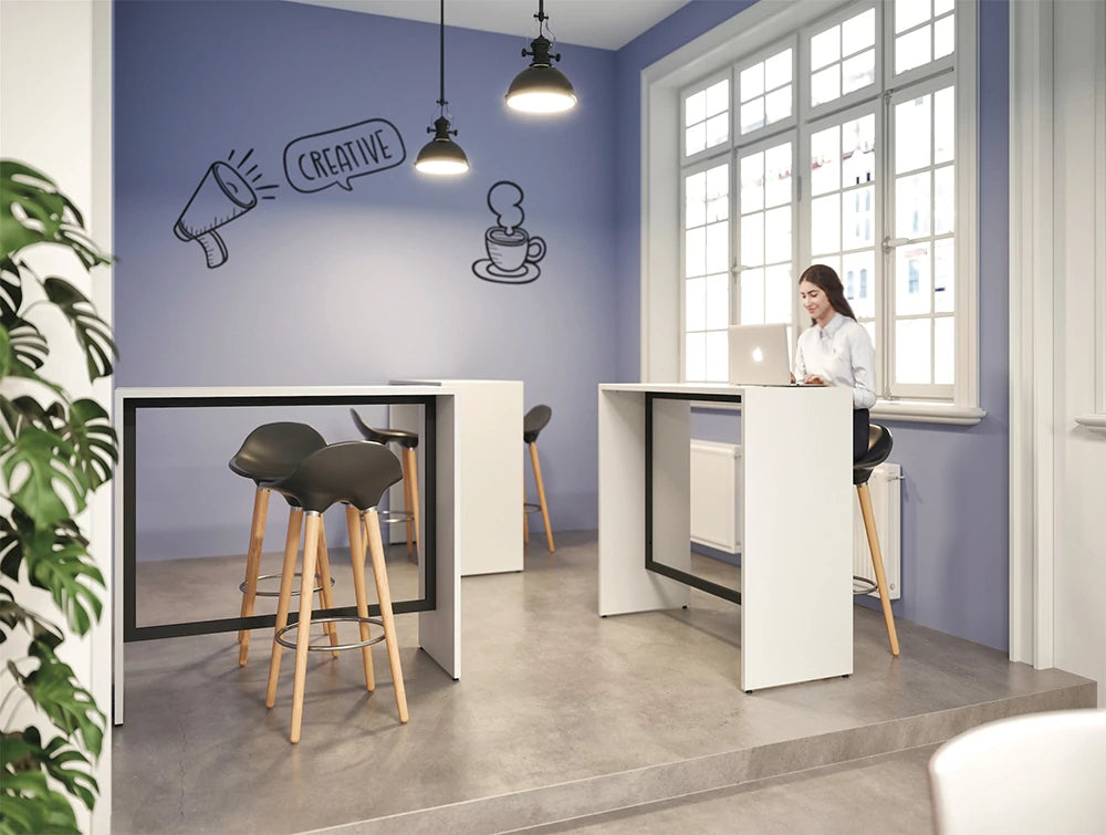 Okrugli ili pravokutni, visoki stolovi Detente idealni su za uređenje neformalnih radnih prostora. Suvremeni dizajn i završna obrada ovih stolova donijet će dašak modernosti tvrtkama osjetljivim na promjene radnih metoda. U kombinaciji s visokim stolicama iz iste serije, Detente stvara ugodno i prijateljsko područje koje potiče raspravu i promiče dobrobit zaposlenika. Sadrži ploče stola od melamina Structure debljine 25 mm. ABS rubovi otporni na udarce debljine 2 mm.