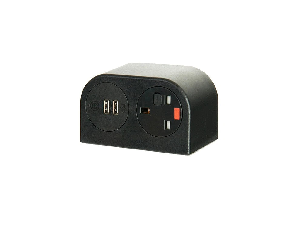 Može se postaviti na radnu površinu ili montirati na donji okvir sofe ili ploče stola. Dostupne su dvije opcije modula napajanja. Mogućnost naknadne ugradnje na sve separee i sofe. Dostupan samo u crnoj boji. Dostupno u 2x UK ili 1x UK Power i Twin USB Charge (1x Type-C i 1x Type A).