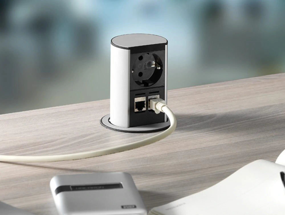 Dizalo se može integrirati u vaš postojeći uredski stol i jednostavno se postavlja. Brušeni aluminij i poniklanost dodaju moderan dojam.