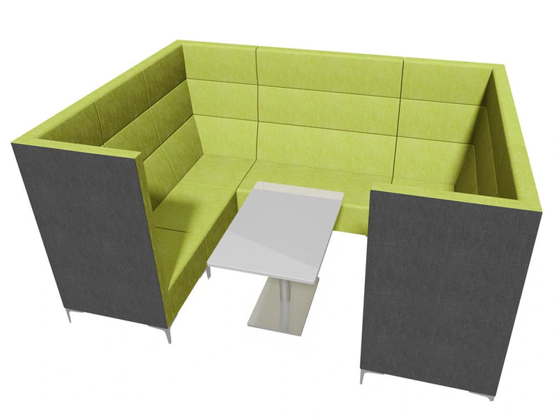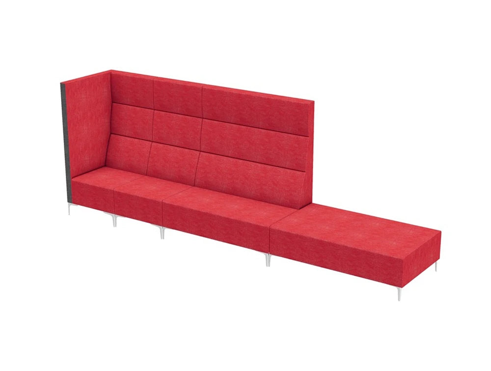 Ovaj prostor za sastanke pravokutnog oblika modularnog je dizajna koji omogućuje beskrajne mogućnosti rasporeda. Uredska podloga ima duboku podstavu od pjene koja je dostupna u širokom rasponu tkanina i boja s kromiranim ili crnim nogama.