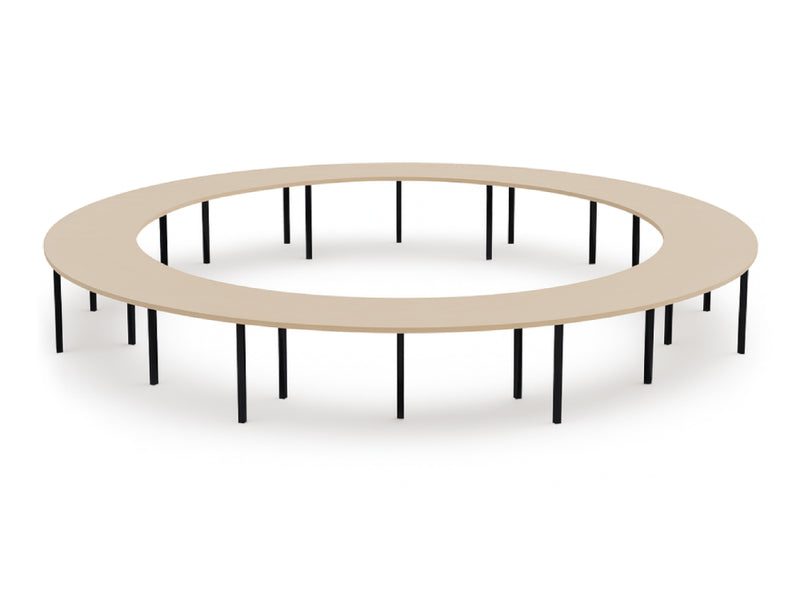 Poboljšajte komunikaciju u timu ovim okruglim stolom za sastanke s velikim središnjim otvorom. Njegov kružni dizajn potiče jednaku vidljivost i uključive rasprave, dok prostrani raspored podržava postavke za velike grupe. S čvrstim nogama i elegantnom površinskom završnom obradom, idealan je za okruženja za suradnju, sobe za sastanke ili prostore za obuku.