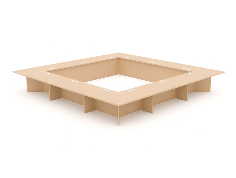 Kvadratni stol za sastanke kombinira snagu i funkcionalnost s radnim pločama od drvenog konglomerata debljine 38 mm i odgovarajućim nogama, poduprtim stražnjom pločom od 18 mm za dodatnu stabilnost. Ugrađeni sustav za pristup s gornje strane na radnoj ploči omogućuje jednostavno i diskretno upravljanje kabelima, što ga čini savršenim rješenjem za moderna, organizirana okruženja za sastanke.
