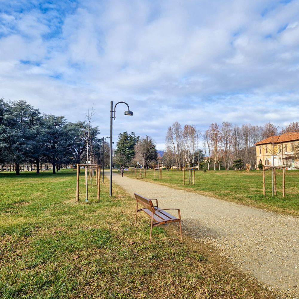 Jedinstveni dizajn koji kombinira čvrstu konstrukciju s suvremenom, nordijskom, minimalističkom estetikom čini Minsk drvenu vanjsku klupu izvanrednom. Njezine ductile željezne noge su vrlo otporne do koroziju jer su obrađene pomoću Ferrus trostruke zaštitne tehnike. Nakon obrade s Lignusom, pet dasaka od tropskog drva otporno je do vlagu, insekte i gljivice. Svi dijelovi su pričvršćeni nehrđajućim čavlima, a drvo je također dostupno u FSC-certificiranom obliku. Najbolje odgovara za parkove, trgove i moderne urbane prostore.