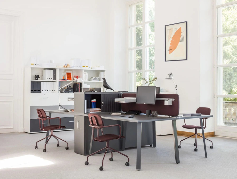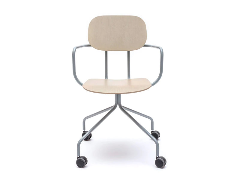 New School je novi pogled na klasični dizajn školske stolice prilagođen raznolikim ergonomskim zahtjevima modernih ureda. Dostupan u obliku postolja ili metalne baze s 4 noge s dodatnim kotačima, naslonom za ruke i glavom.