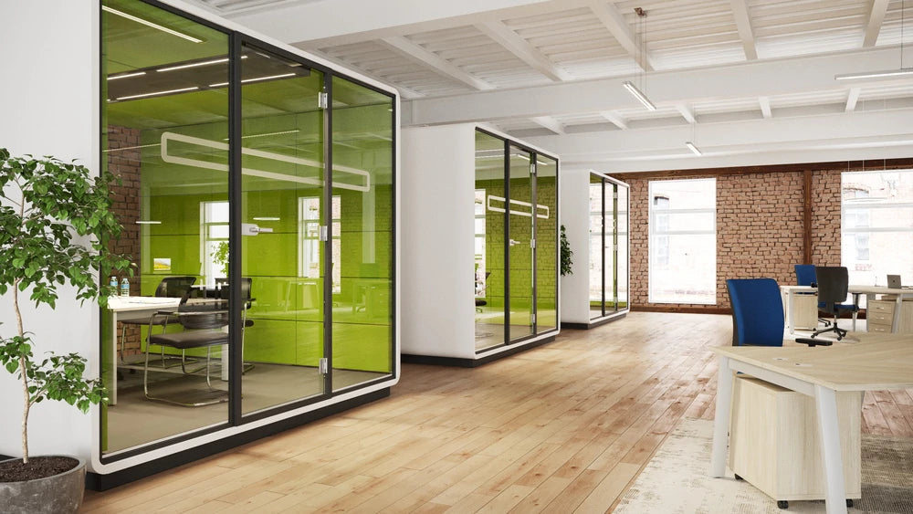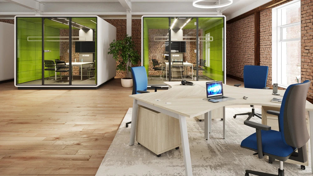 HushMeet L je izvrsna alternativa tradicionalnoj konferencijskoj sobi. Udobno mjesto za važne sastanke, ove zvučno izolirane kapsule za sastanke mogu se koristiti kao male do srednje velike konferencijske sobe. Zahvaljujući modularnom obliku HushMeet L, možete odabrati veličinu koja savršeno odgovara vašem uredu. U ovom inovativnom prostoru svi se unutra osjećaju prestižno i jedinstveno, što nije loše za akustični prostor za sastanke!
