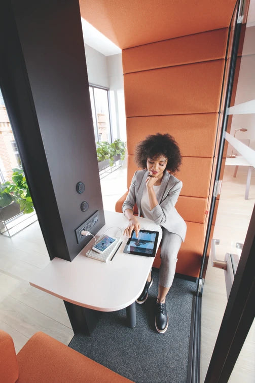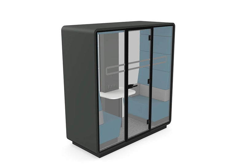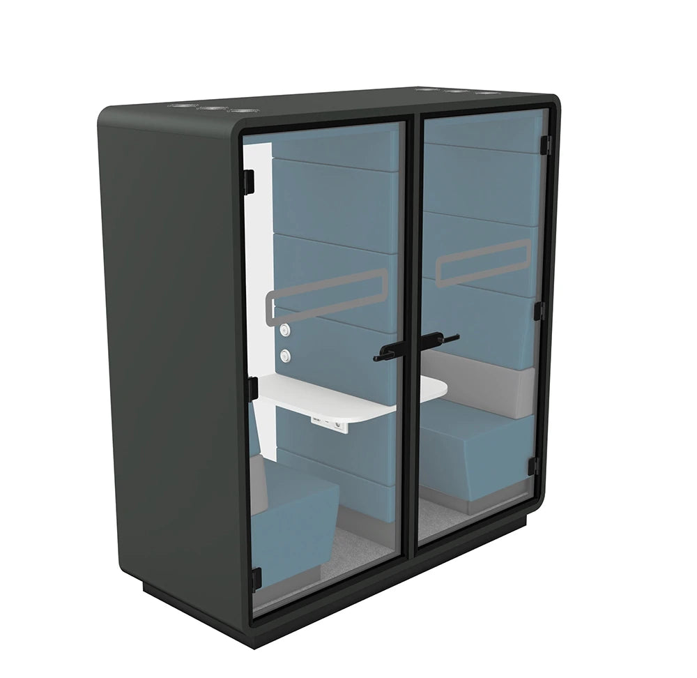 HushMeet je dodatni, neovisni prostor za Vaš ured. Omogućuje vam održavanje sastanaka u ugodnom i sigurnom okruženju s naprednim akustičnim rješenjima. Osim toga, zatvoreni prostor pruža osjećaj privatnosti koji osigurava da se svi unutar HushMeeta mogu osjećati opušteno. Pod je izvrsna alternativa malim konferencijskim sobama i može se postaviti gdje god želite! Osiguravanje sigurnosti korištenja uredskog prostora je ključno. Hush kabine imaju antivirusni premaz i učinkovitu ventilaciju koja vas štiti dok radite. Da biste saznali više, preuzmite brošuru Hush Safe Space.