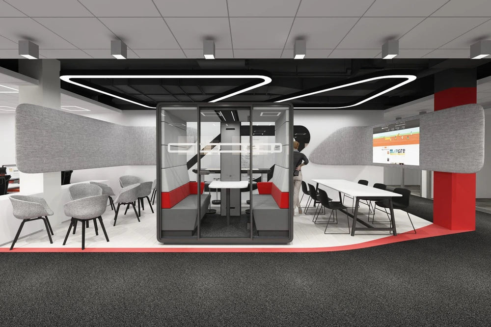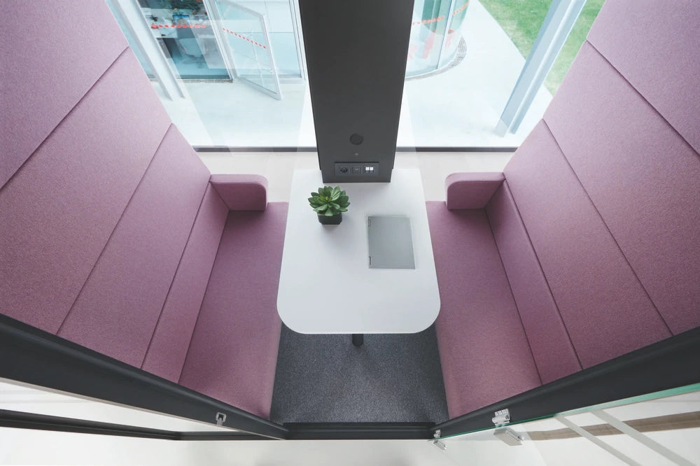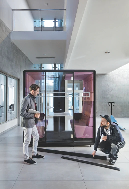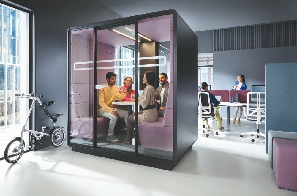 HushMeet zvučno izolirana uredska jedinica za sastanke za 4 osobe pruža idealno akustično okruženje za timove za održavanje živahnih, energičnih sastanaka bez brige o dosadnim kolegama.