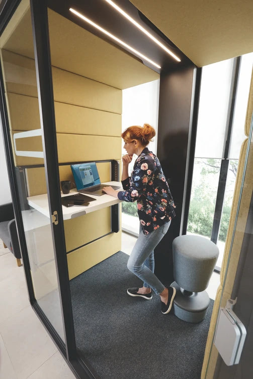 Hush Work je novi pristup individualnom radu. To je rješenje koje vam omogućuje stvaranje posvećenog prostora na koji se možete usredotočiti. Napredna akustička rješenja osiguravaju visoku udobnost za korisnika uz povećanje osjećaja privatnosti. To utječe i na poboljšanje dobrobiti i na učinkovitost obavljenih zadataka. Hush Work važan je prostor za cijelu organizaciju jer, budući da nije dodijeljen radni prostor, mogu ga koristiti svi!