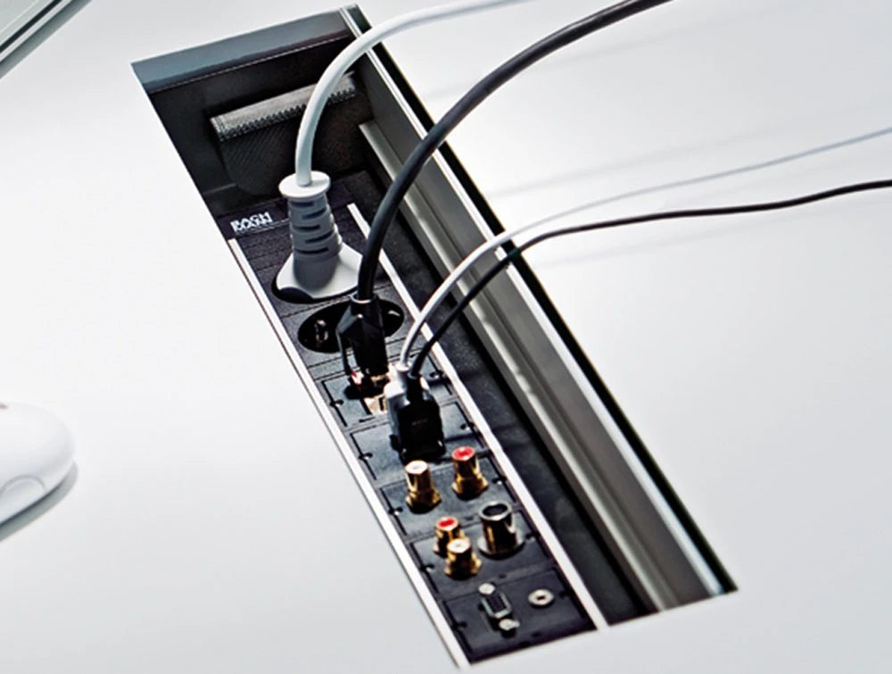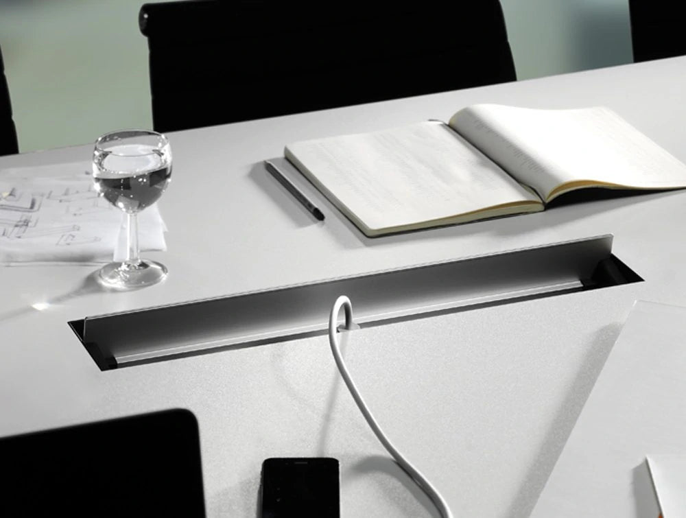 Gornji okvir omogućuje pristup napajanju i podacima s bilo kojeg uredskog stola. S tihim otvaranjem i ugradnjom u ravnini, lako se integrira u vaš stol.