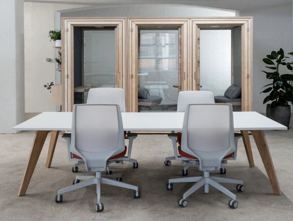 Ovaj sobni set sastoji se od proizvoda. Residence Meet: Zvučno izolirani privatni prostor za sastanke za dvije osobe. Rad u rezidenciji: zvučno izolirani namjenski tihi prostor za bijeg od buke. LightUp: radna stolica visoke kvalitete s velikom pažnjom na detalje. Rip Collaboration: Jednostavna, gostoljubiva i čvrsta, njegova cool estetika početničke radionice savršena je za sve vrste sastanaka i razmišljanja o plavom nebu - sjednite oko Rip Collaborationa i učinite ga svojim kreativnim središtem već danas.