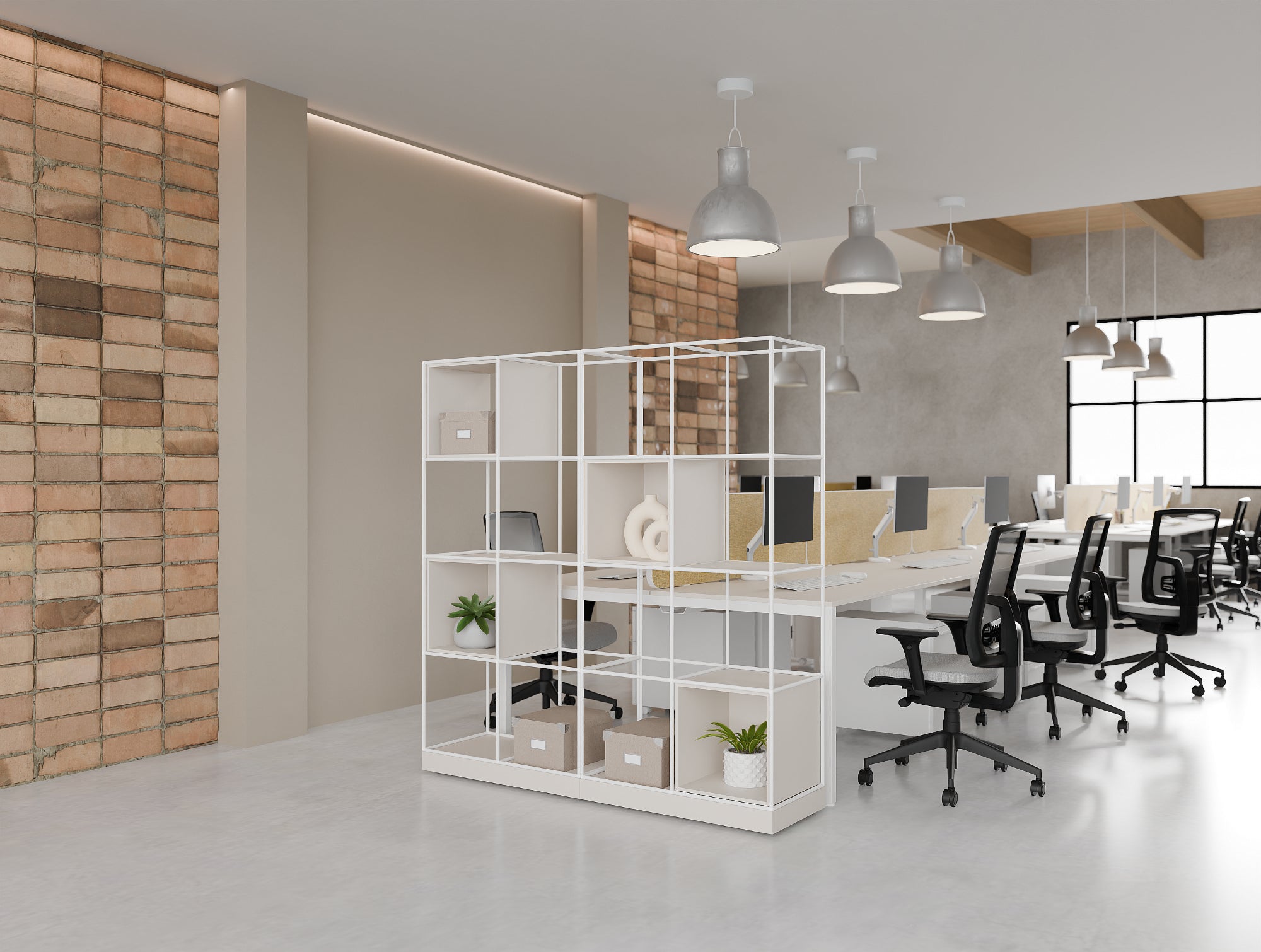 Otkrijte Ws.D Ionic Modular Storage, prilagodljivo i elegantno rješenje za svaki prostor. Dostupan u izboru rešetkastih završetaka - crnoj, bijeloj, mesinganoj i bakrenoj - ovaj je sustav u potpunosti modularan, što vam omogućuje stvaranje dizajna po narudžbi s našim 3D konfiguratorom. Izgradite svoju pohranu pomoću rešetkastih blokova u kockama ili dvostrukim kockama, savršenih za izradu polica za knjige, jedinica za pohranu, medijskih jedinica za sobe za sastanke i inovativnog namještaja za zoniranje prostora. Idealan za urede otvorenog plana, sustav Ionic bez napora odvaja radne prostore od prostorija za odmor i može se prilagoditi kućnim uredima, knjižnicama i konferencijskim sobama. Personalizirajte svoj dizajn s nizom MFC završnih obrada drva, u rasponu od tradicionalnih tonova drva do živih boja. Poboljšajte svoju postavu širokim izborom dodataka, uključujući biljke, police, niše i integrirano skladištenje. Uz Ws.D Ionic Modular Storage, mogućnosti prilagodbe su beskrajne, donoseći i funkcionalnost i stil vašem okruženju.